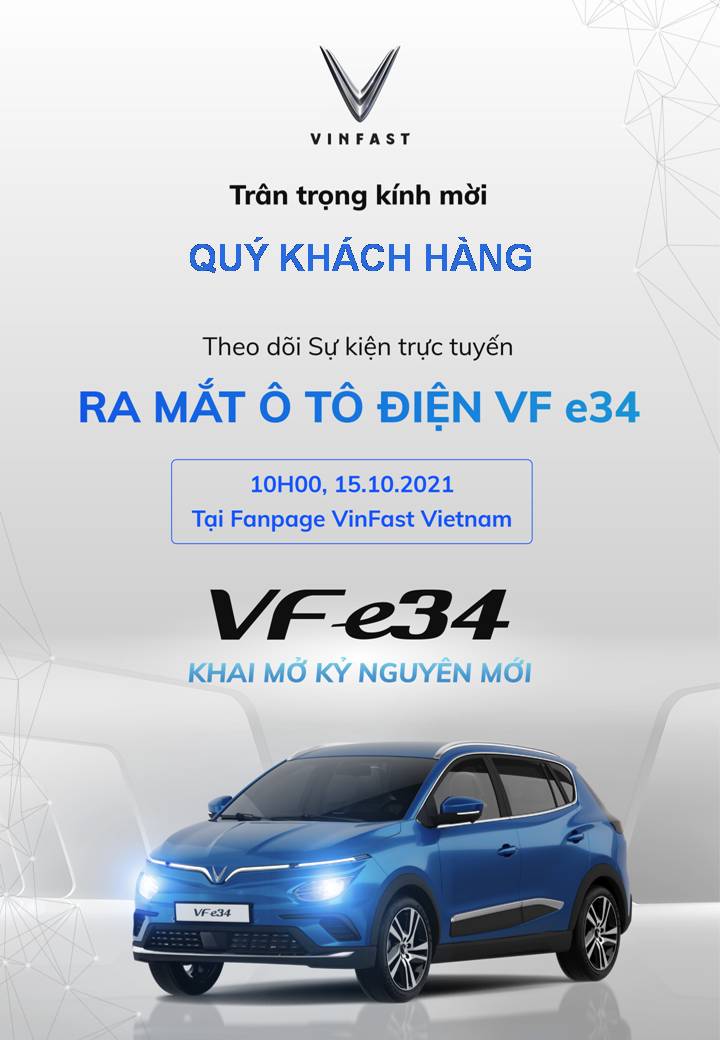 Đặt lịch ngay để chào đón màn ra mắt chính thức của VF e34 vào lúc 10h00 sáng Thứ 6, ngày 15.10.2021.