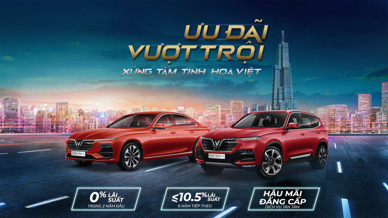 VinFast công bố chương trình siêu ưu đãi tài chính dành cho khách hàng mua xe VinFast Fadil, VinFast Lux A2.0 và VinFast Lux SA2.0 trả góp. Theo đó khách hàng vay mua xe trả góp qua ngân hàng sẽ được VinFast miễn phí lãi vay 0% trong 2 năm đầu tiên và được vay tối đa đến 8 năm.
