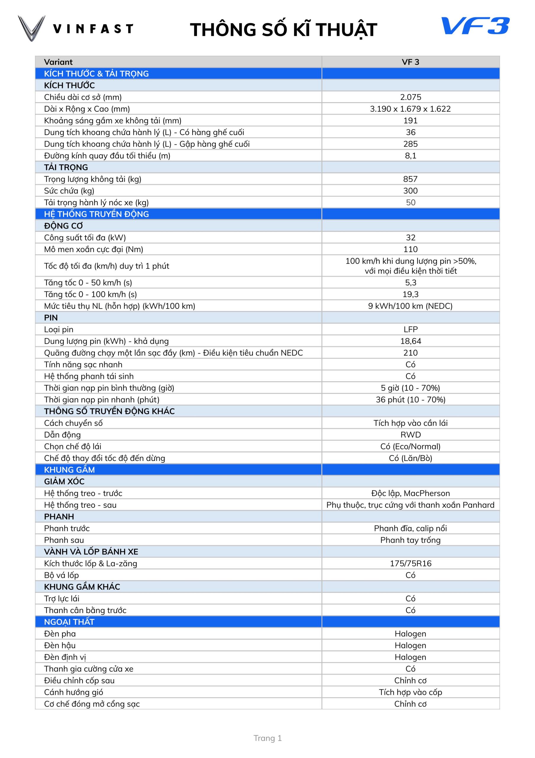 4. Thông số kỹ thuật VinFast VF3 2024: Động cơ, Vận hành