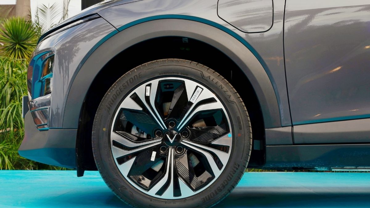 Điểm nhấn ở phần thân VF6 là bộ la-zăng 5 chấu phối 2 tông màu trẻ trung, thể thao. Vòm bánh xe thiết kế mở rộng, sơn đen mờ, tăng thêm vẻ hầm hố, mạnh mẽ đúng chuẩn SUV.