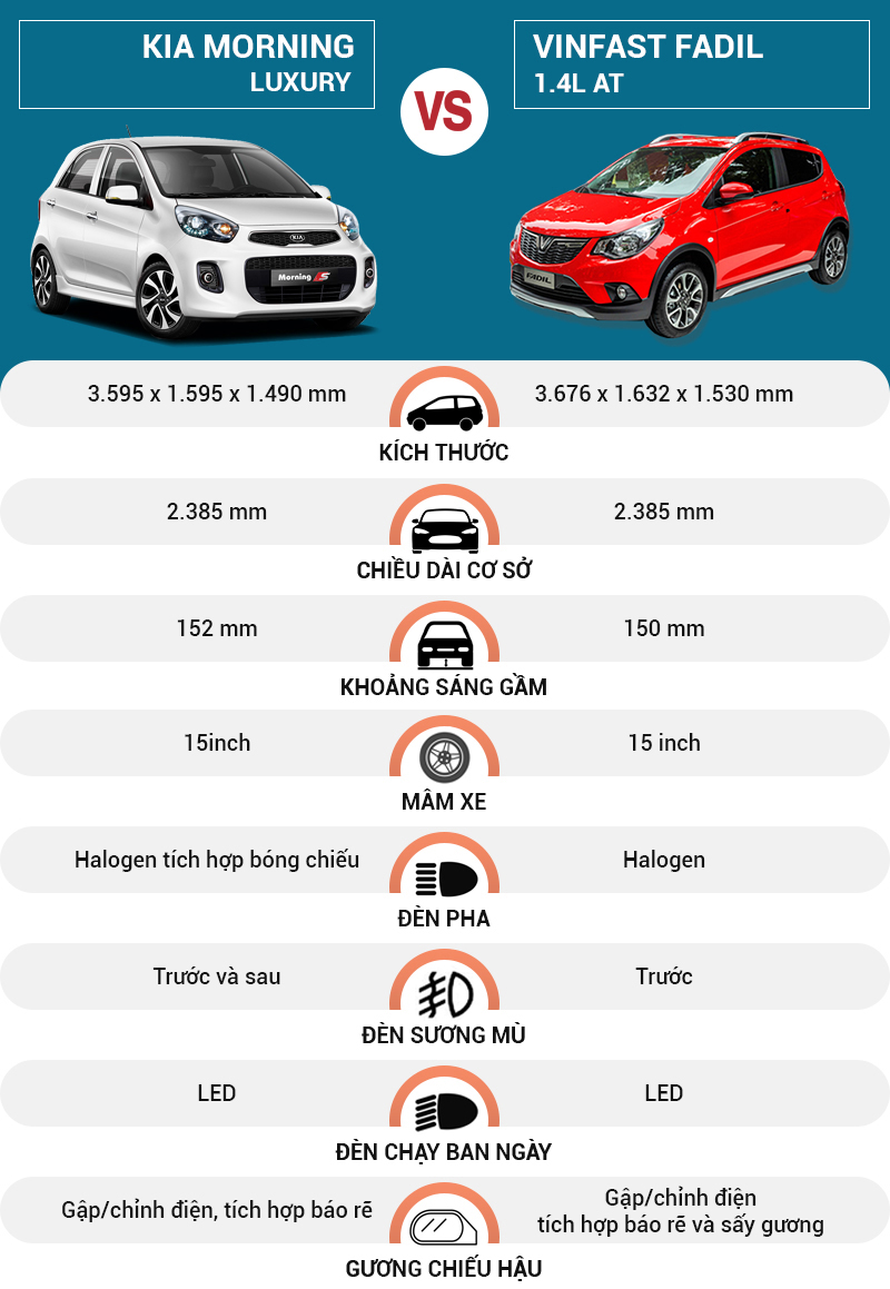 So sánh VinFast Fadil 1.4L AT và KIA Morning